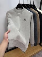 Suéter de punto de algodón puro con cuello redondo para primavera y otoño, suéter Base de Color sólido para hombre, suéter fino informal de negocios de gran tamaño