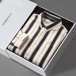 2025 automne pur coton rayé hommes chemise à manches longues grande taille en vrac hommes revers à manches longues chemise personnalisation d'usine