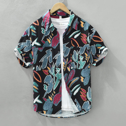 Zomer 2025 Dunne Casual Graffiti Bloemen Anti Zou Heren Korte Mouwen Shirt Business Plus Size Fabriek Shirt Groothandel